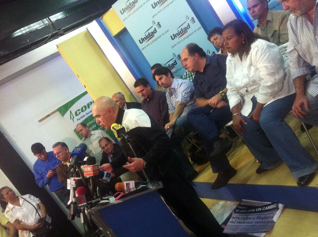 "Esta rueda de prensa no es para contestarle al Gobierno si no para dirigirnos al pueblo con un mensaje de esperanza, hay una fuerza de cambio que garantiza la estabilidad del pueblo. En Venezuela se está perpetuando un golpe al bolsillo y la dignidad de los venezolanos cuando se anunció ayer una paridad de 170 bolívares fuertes por dólar", afirmó Torrealba en declaraciones en la sede de Copei, desde donde se pronunció contra las acusaciones del presidente Maduro.